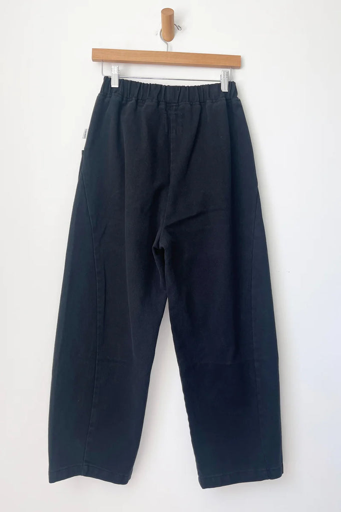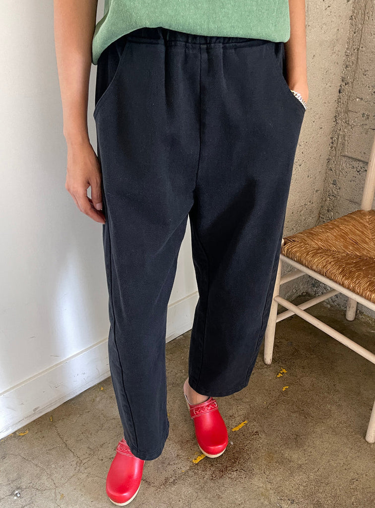 These are the pants we love to live in! She has thoughtful design details like an elastic high waist that gives you a room to breath, slightly curved leg shape, cropped length to show off your favorite socks and shoes, unique side panels and deep pockets. The heavy-weight canvas material likely adds durability and gives them a structured look. The Arc pants would make a great addition to everyone's wardrobe and complement to all the Le Bon Shoppe pieces you own!