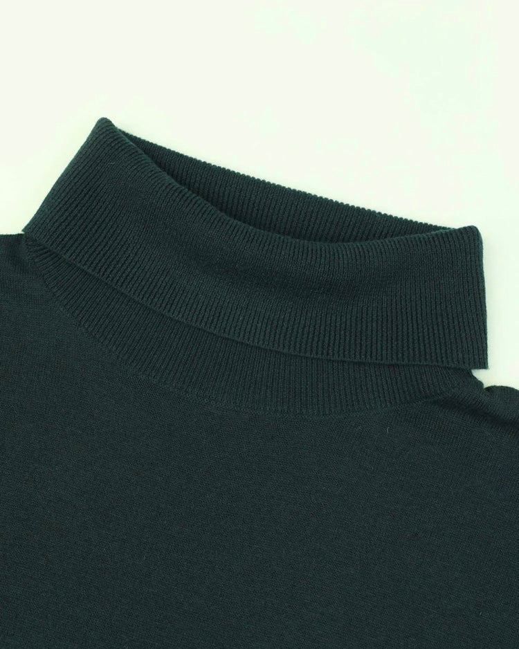 This fine-knit top features a high turtleneck with long sleeves, finished with ribbed edges. A slim-fit silhouette makes this the perfect layering piece.