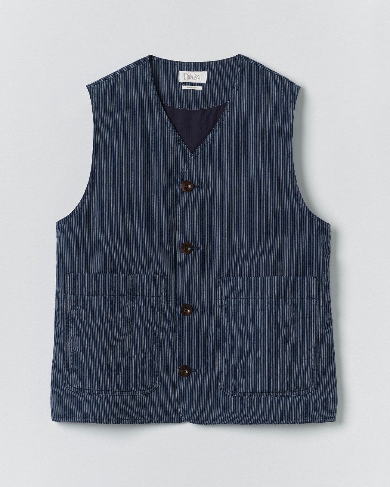 Toast | Railroad Stripe Padded Gilet | Denim Blue