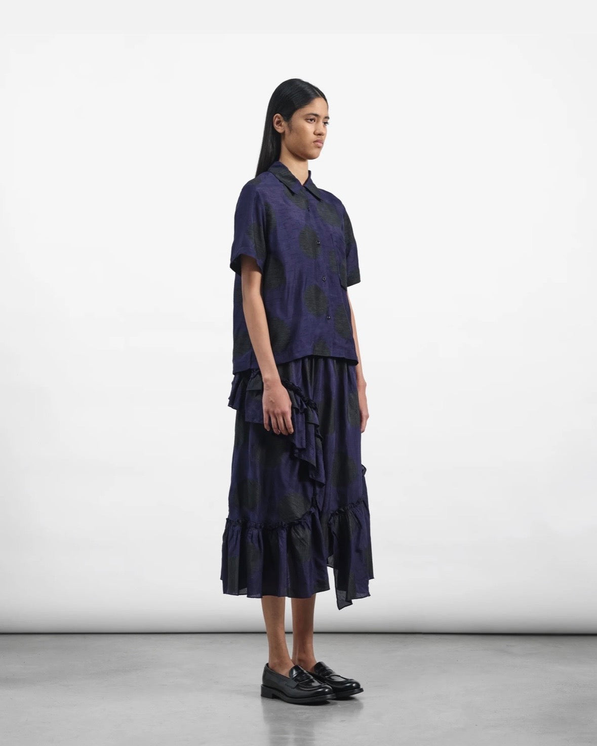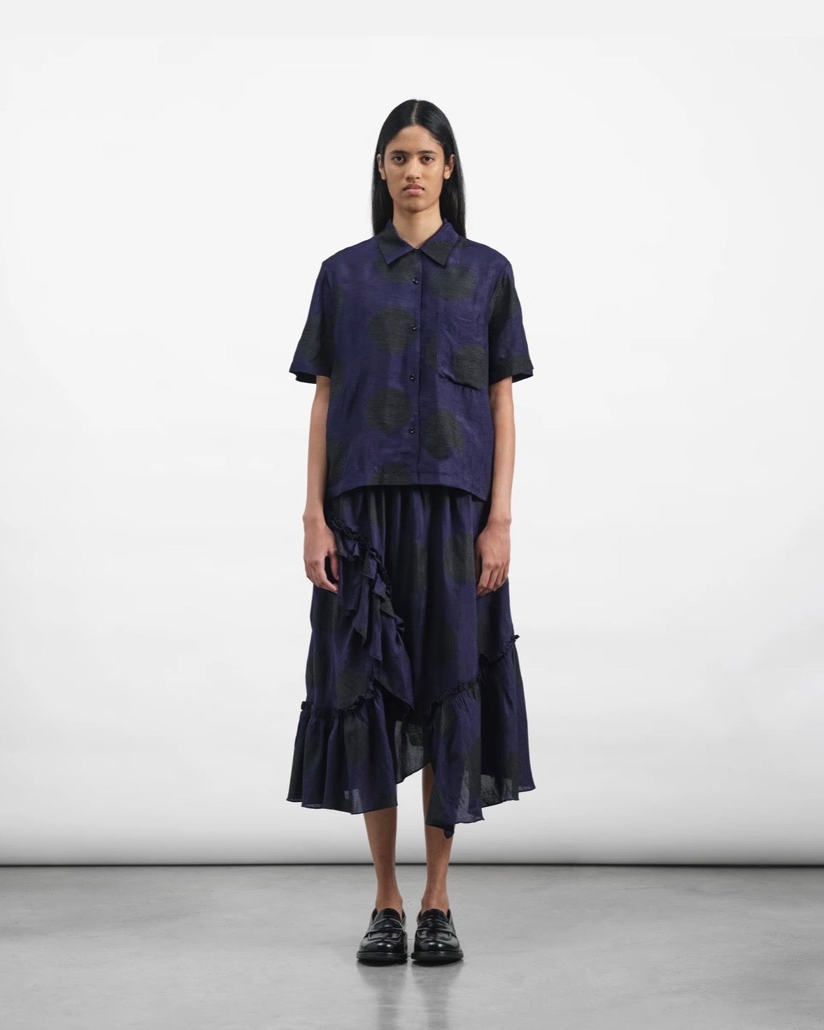 YMC | Draped Skirt | Bleeding polka dot print