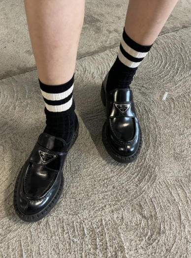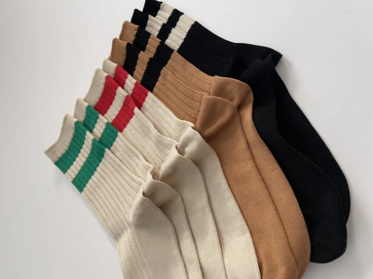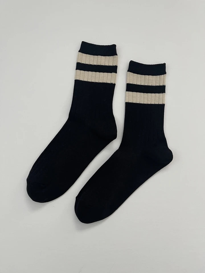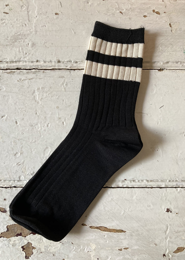 Bold stripe edition of Her Socks in Mercerized Combed Cotton. The perfect height, knit rib socks.