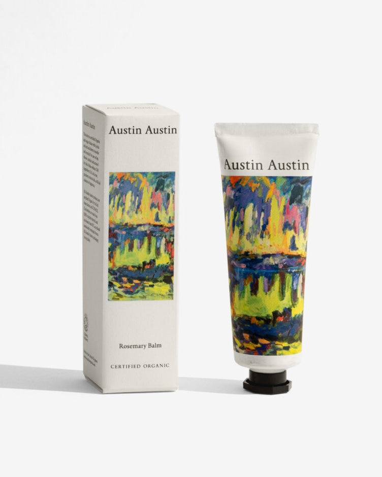 The balm holds the artwork The Parting of the Green Sea by New York artist Adrianne Rubenstein. This artwork explores a romanticised depiction of the little green pieces of paper used in sushi boxes.