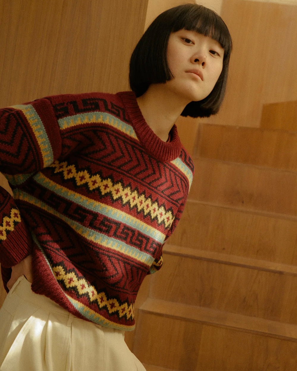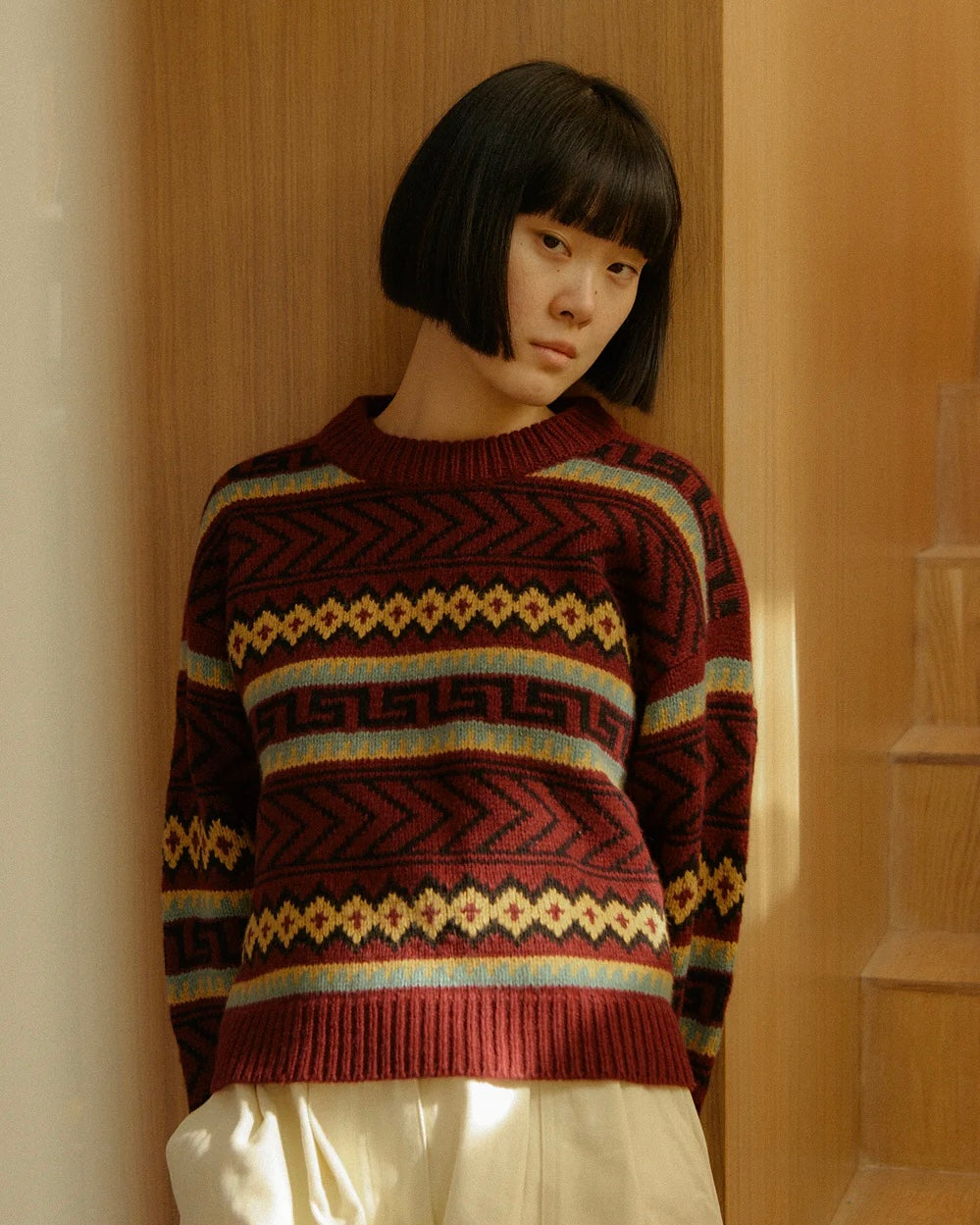 LF Markey | Bjorn Knit Jumper | Burgundy Intarsia