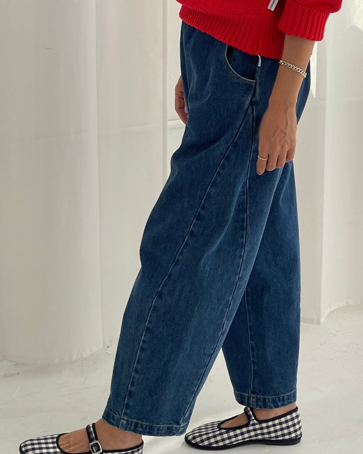 These are the pants we love to live in! She has thoughtful design details like an elastic high waist that gives you a room to breath, slightly curved leg shape, cropped length to show off your favourite socks and shoes, unique side panels and deep pockets. The heavy-weight canvas material likely adds durability and gives them a structured look. The Arc pants would make a great addition to everyone's wardrobe and complement to all the Le Bon Shoppe pieces you own!