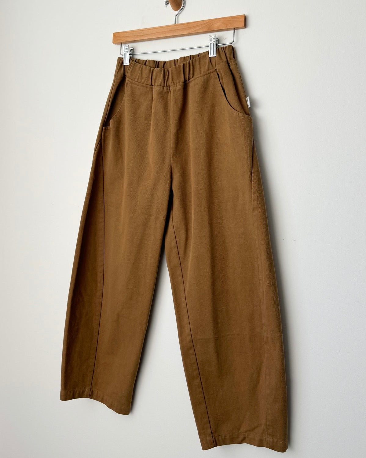These are the pants we love to live in! She has thoughtful design details like an elastic high waist that gives you a room to breath, slightly curved leg shape, cropped length to show off your favourite socks and shoes, unique side panels and deep pockets. The heavy-weight canvas material likely adds durability and gives them a structured look. The Arc pants would make a great addition to everyone's wardrobe and complement to all the Le Bon Shoppe pieces you own!