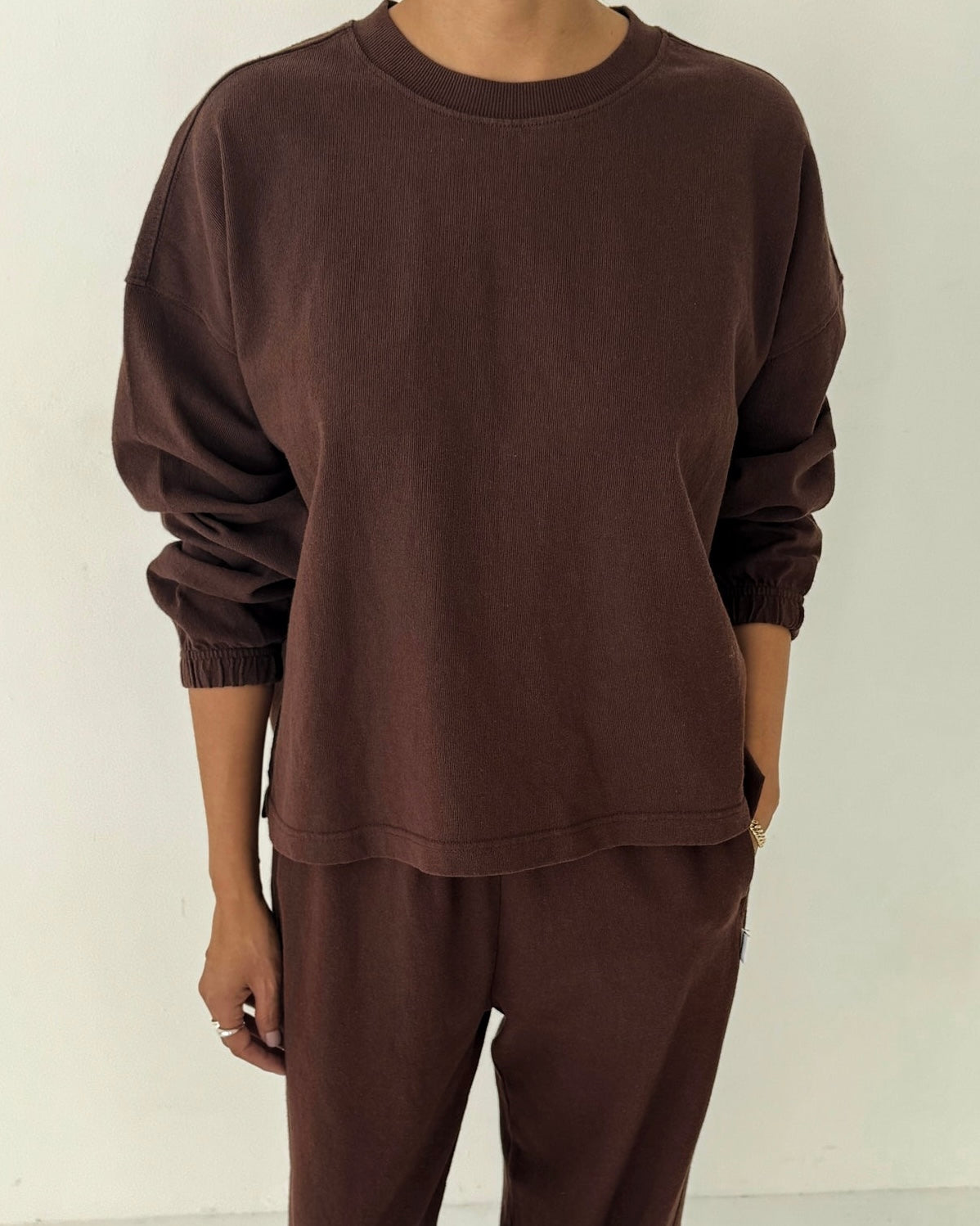 We dreamed this beauty up while searching high and low for a simple long sleeve with a feminine touch. This essential long sleeve tee is made in a gorgeous 100% heavyweight cotton fabric. Super raw textured yet soft and airy! Elastic ruched sleeve opening creates a slight balloon sleeve effect worn down and scrunches up beautifully. This tee is garment dyed and pre-washed for a rich textured look.