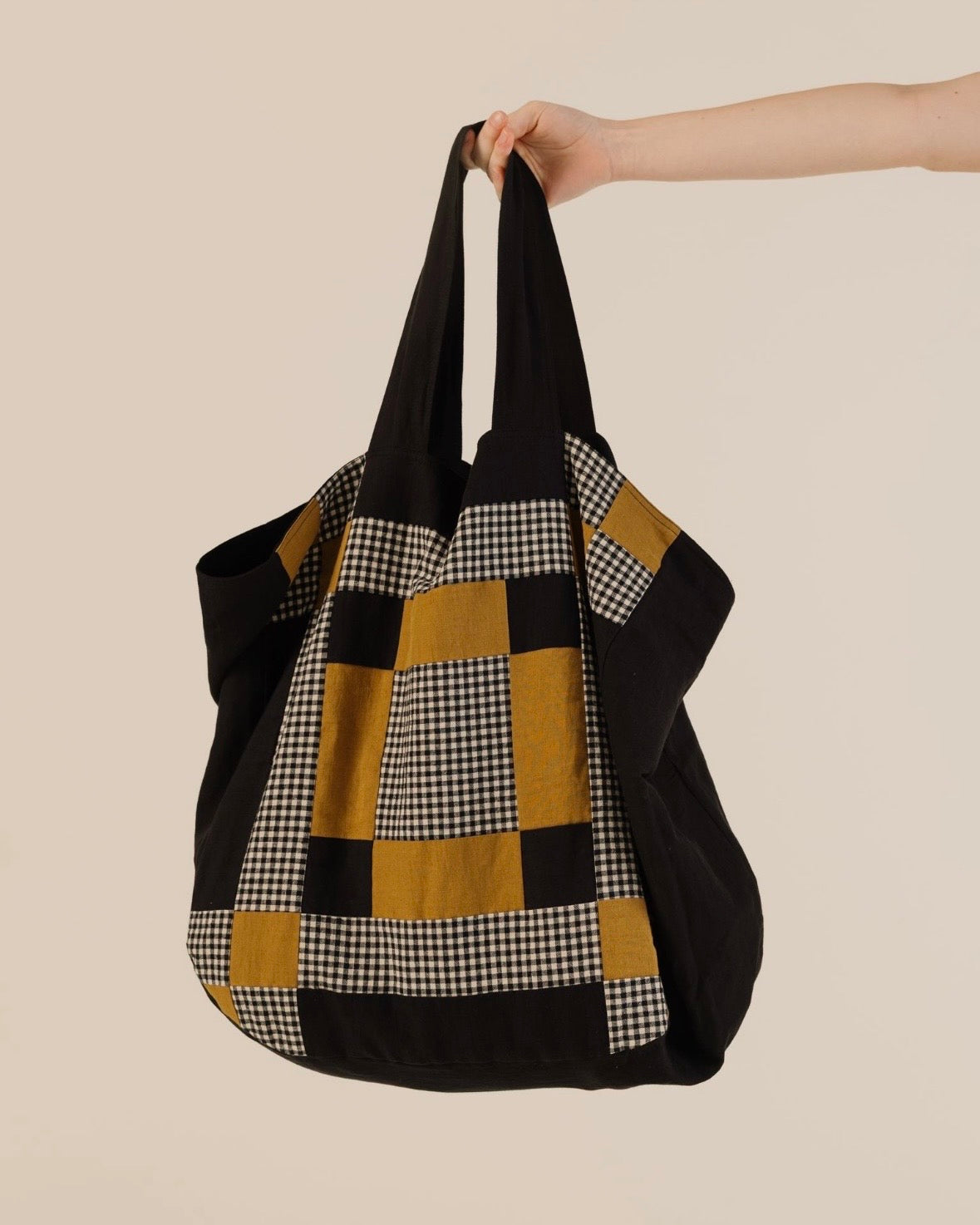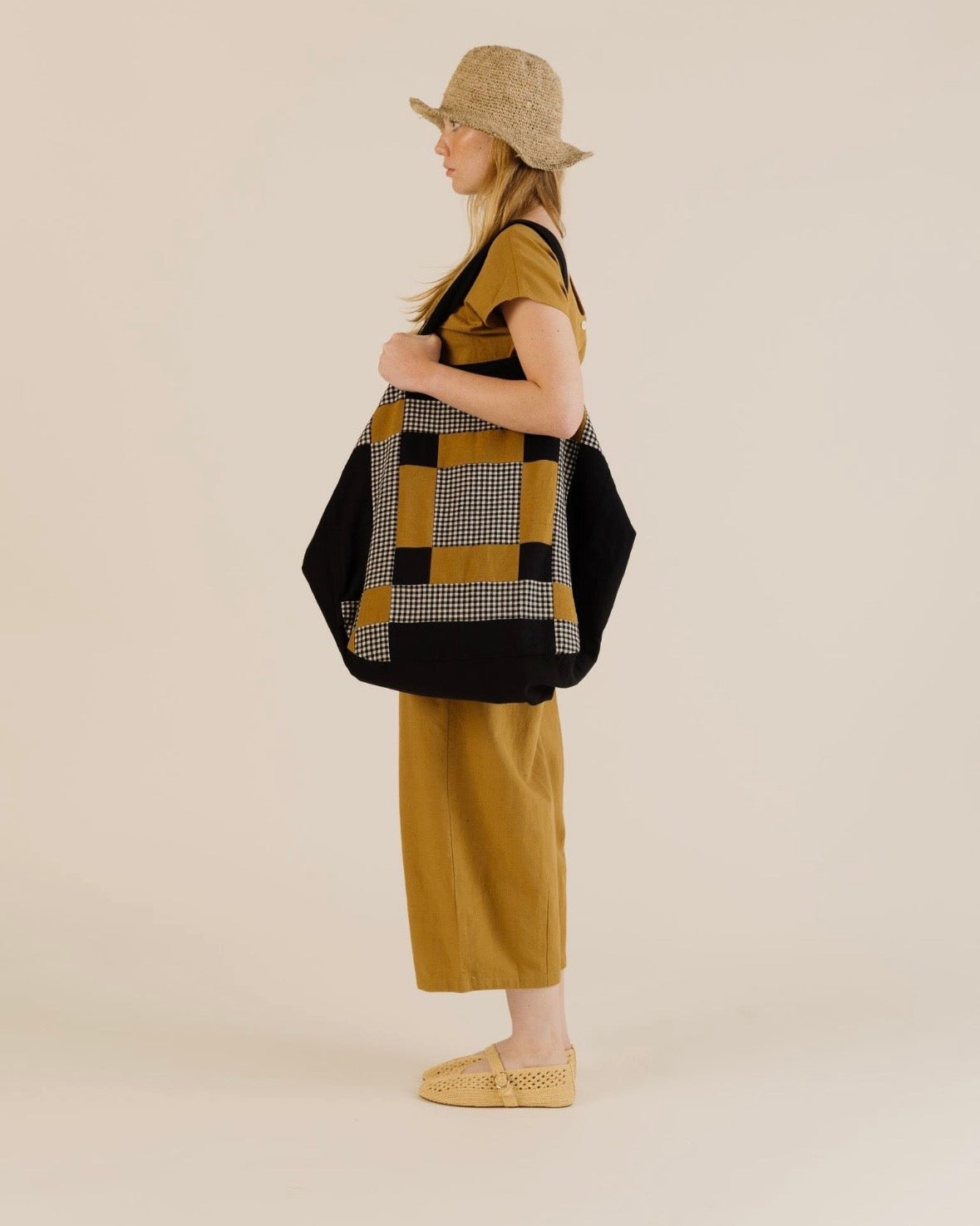 The Esther Bag is based on one of all time best selling bags. This style is oversized so works well as a day bag, shopper or beach bag. The wide straps make it comfy to wear. This style featires a unique patch-work design using three of our seasons key fabrics.
