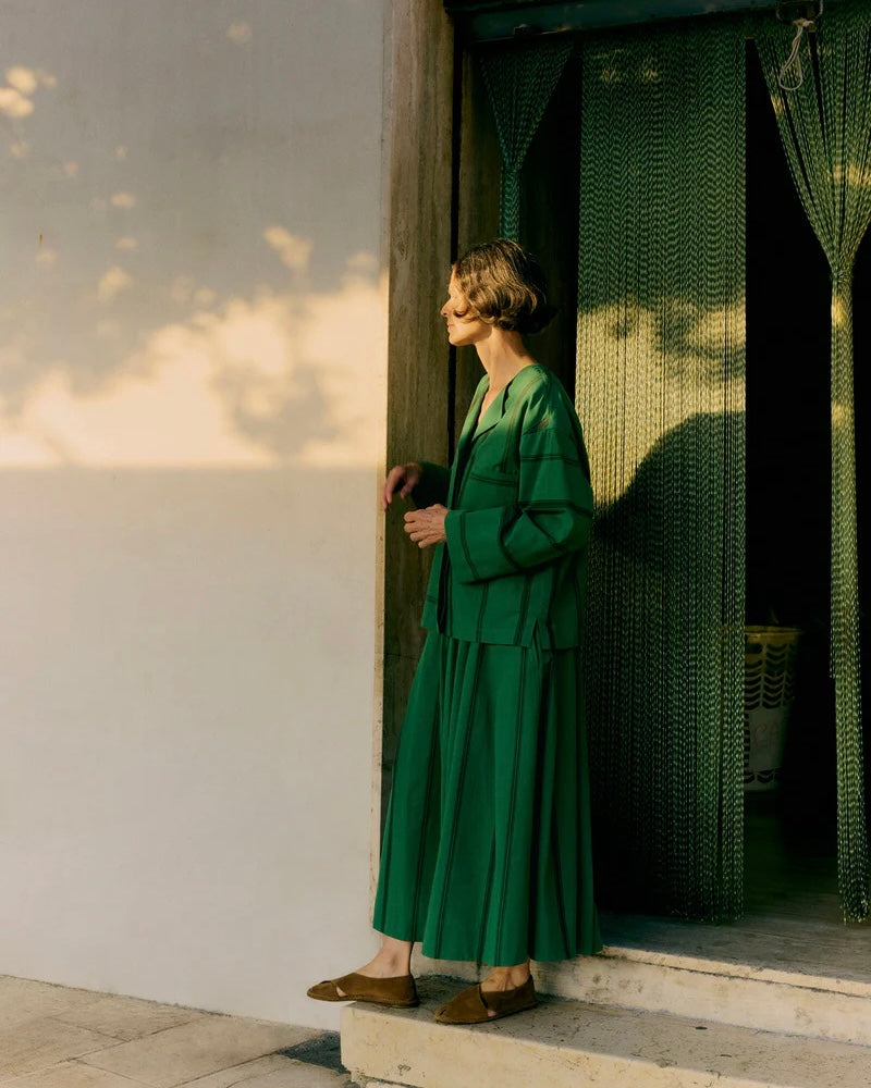 Toast | Tea Towel stripe long sleeve top | Sea Green