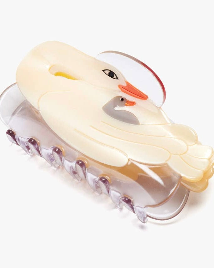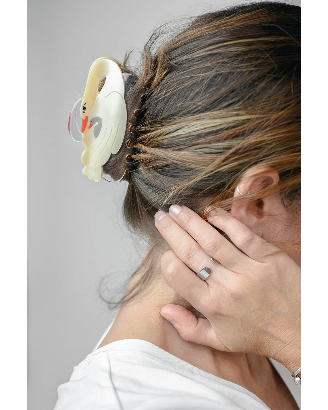 Cygnet Claw A fluffy grey cygnet nestles into it’s mothers majestic wings, eager for a gentle float across the pond. This sweet little claw captures a a loving scene between mother and baby, a reminder to hold close the ones you love most. Brimming with perfect tiny details, including the smallest sparkling rhinestone.