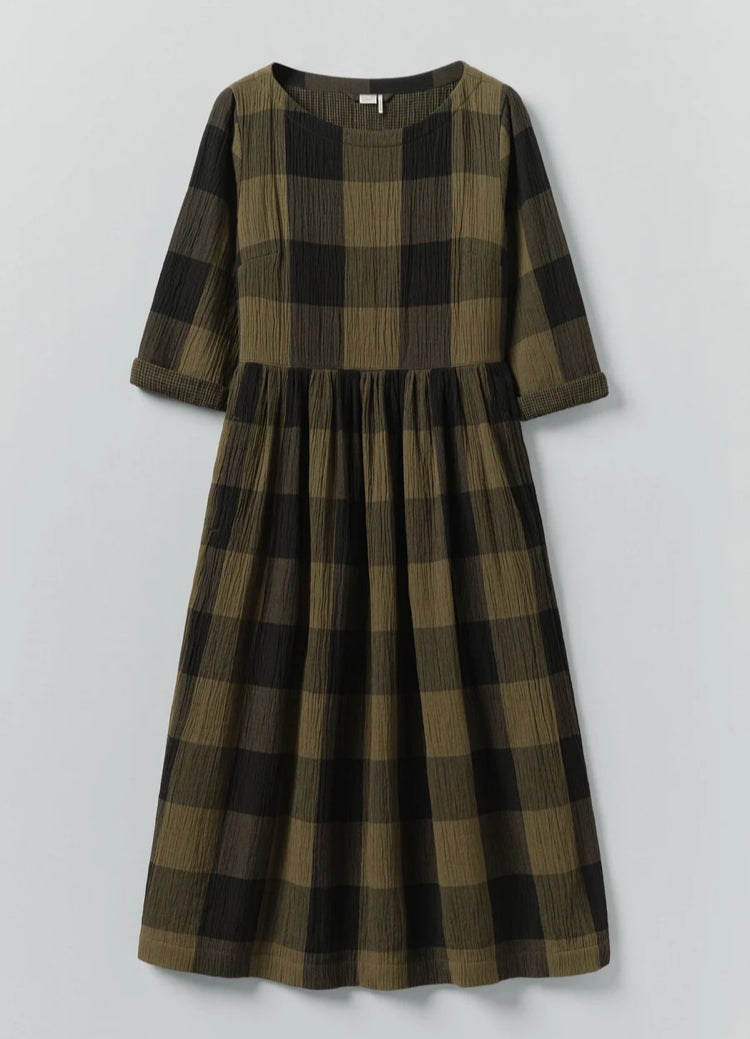 Toast | Binding check cotton wool gathered skirt | Black Ecru