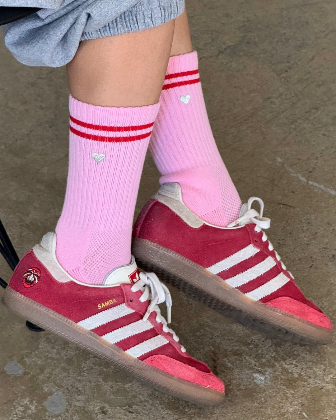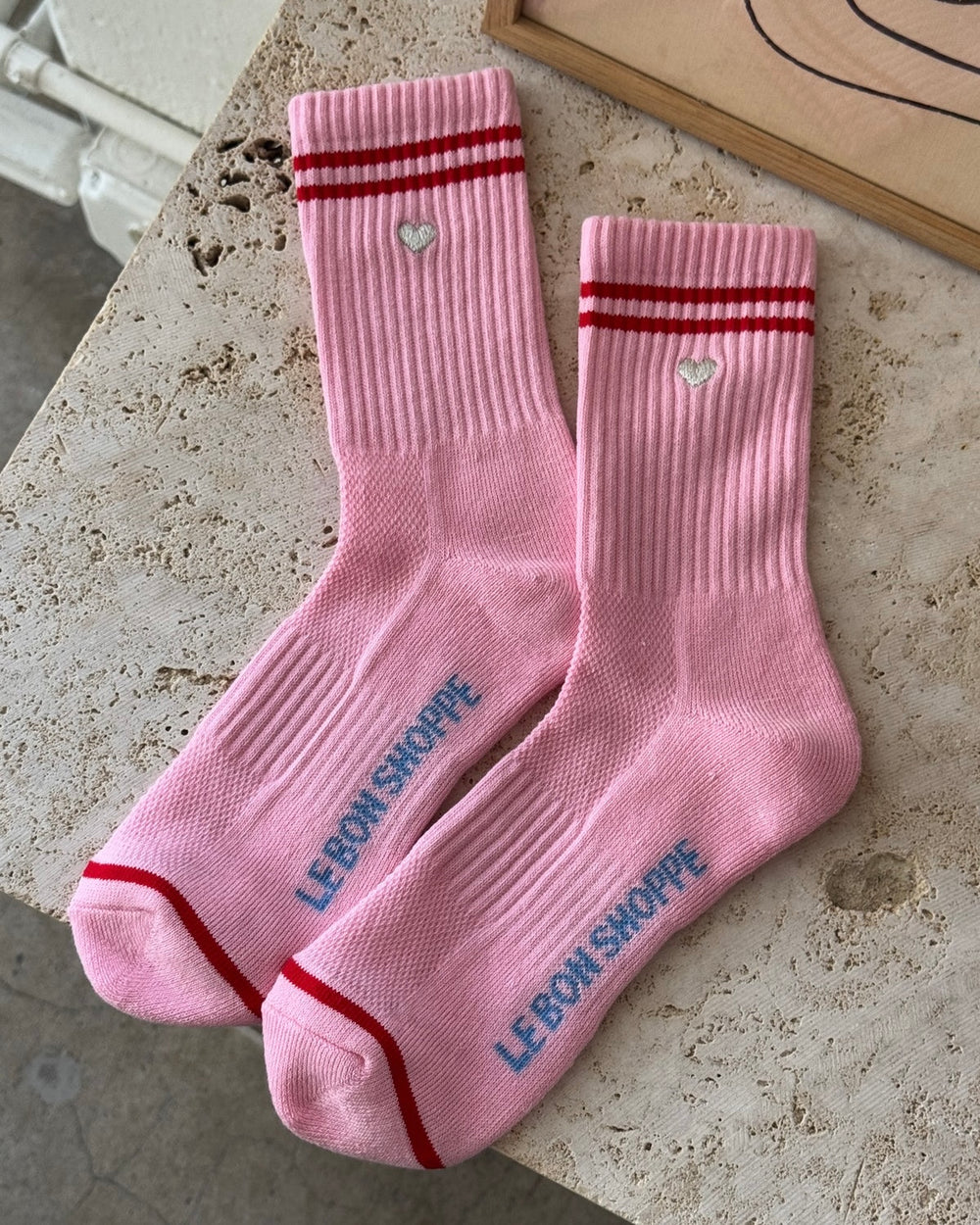 Le Bon Shoppe | Embroidered Boyfriend Sock | Amour pink & Heart