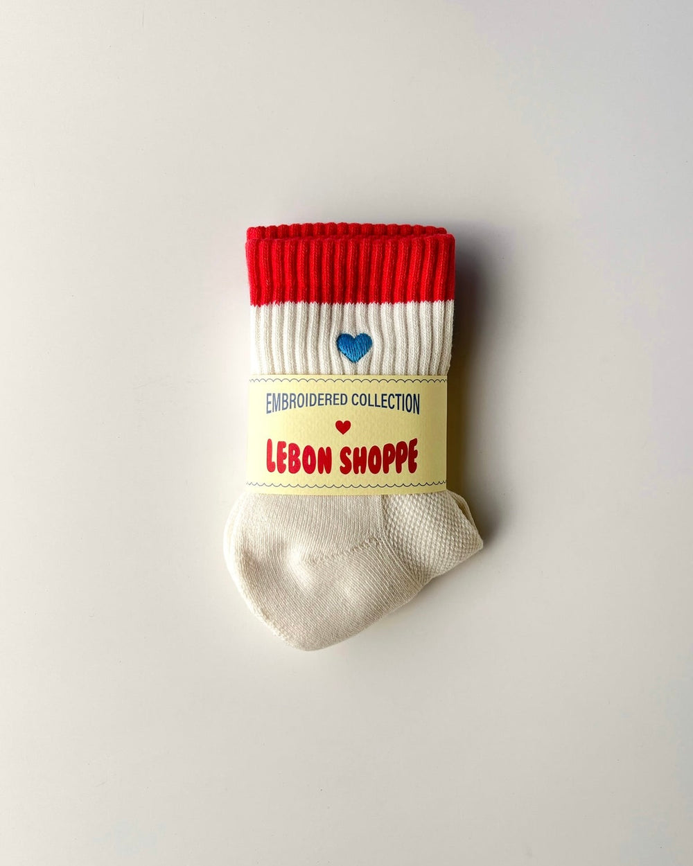 Le Bon Shoppe | Embroidered Colour Block Girlfriend Socks | Blue Red & Heart