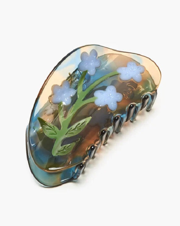 The Forget-me-not symbolizes long lasting love and loyalty. In the style of our other classic floral claws, but more detailed! This sprig of sweet light blue flowers is ready to become your new favorite hair claw.